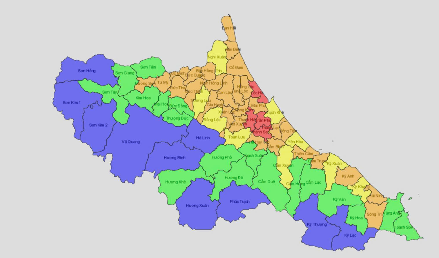 - Vùng núi cao nằm ở phía Đông của dãy Trường Sơn, địa hình dốc bị chia cắt mạnh, tạo nên thành những thung lũng nhỏ hẹp chạy dọc theo các triền sông lớn của hệ thống sông Ngàn Phố, Ngàn Sâu và Rào Trổ.