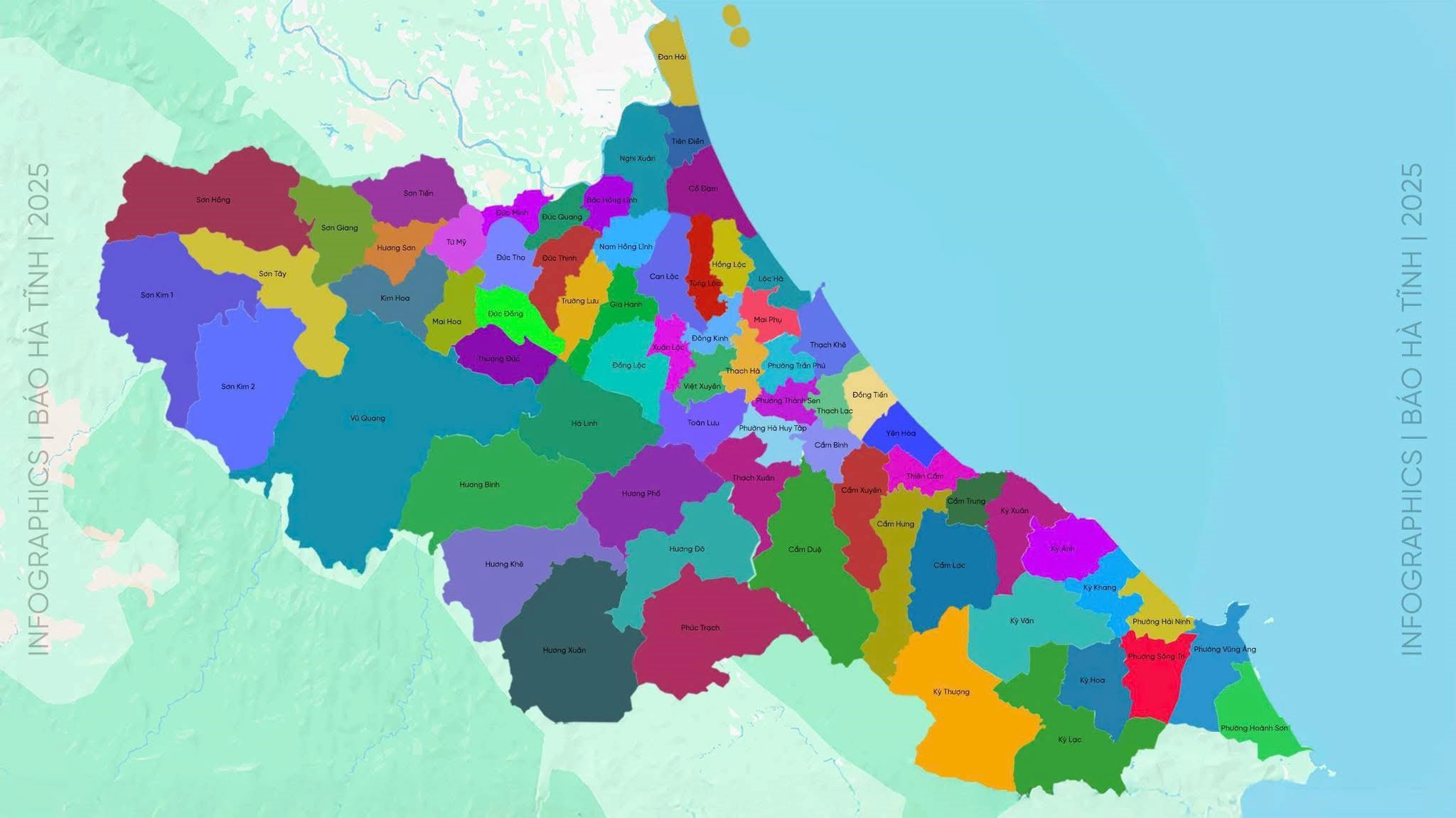 Các đơn vị hành chính trên địa bàn tỉnh Hà Tĩnh sau sáp nhập (Nguồn ảnh: BHT)