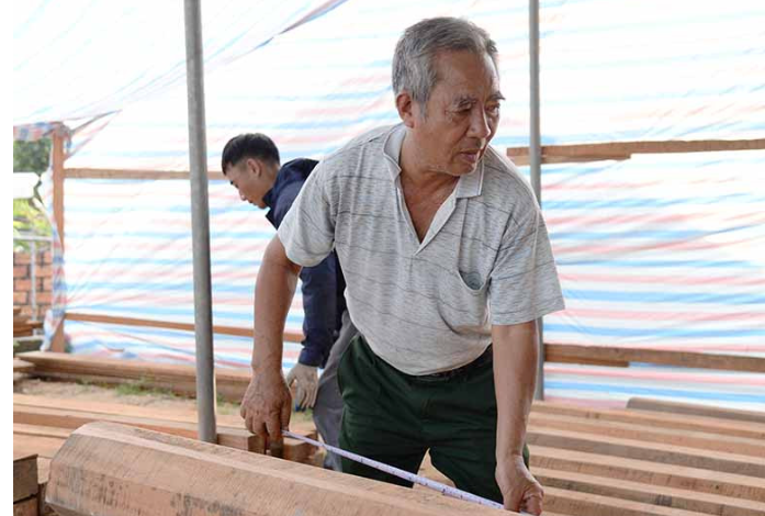 Những ngày cuối tháng 5, ông Võ Quang Tạo (SN 1960, ở thôn Đông Quang Trung, xã Tùng Lộc) miệt mài hướng dẫn thợ đo đếm, cắt xẻ gỗ theo đơn đặt hàng. Tuy tuổi đã ngoài 60, song đối với ông, tiếp tục làm việc, cống hiến chính là lẽ sống.
