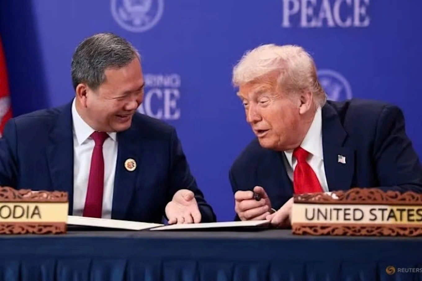 Thủ tướng Campuchia Hun Manet và Tổng thống Mỹ Donald Trump tại cuộc gặp ở Malaysia (Ảnh: Reuters).