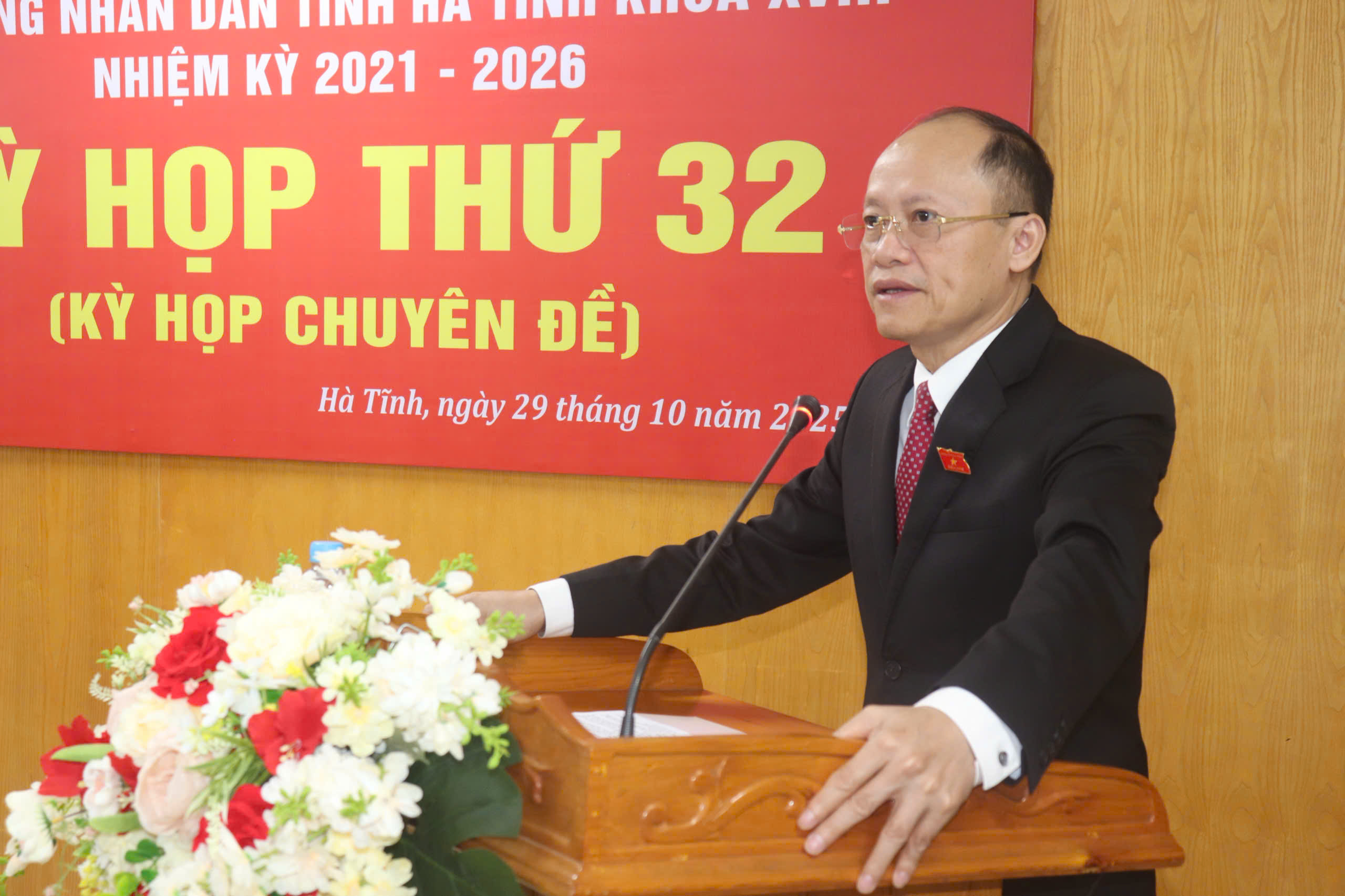 Tại kỳ họp, Giám đốc Sở Tài chính Nguyễn Trọng Hiếu đã trình bày các tờ trình về điều chỉnh một số chỉ tiêu phát triển kinh tế - xã hội năm 2025; gia hạn thời gian bố trí vốn ngân sách địa phương đối với dự án cải thiện cơ sở hạ tầng các xã bị ảnh hưởng bởi ngập lụt tỉnh Hà Tĩnh và Sửa đổi, bổ sung một số điều của Nghị quyết số 137/2024/NQ-HĐND ngày 13/01/2024 và Nghị quyết số 143/2025/NQ-HĐND ngày 23/01/2025 của HĐND tỉnh.